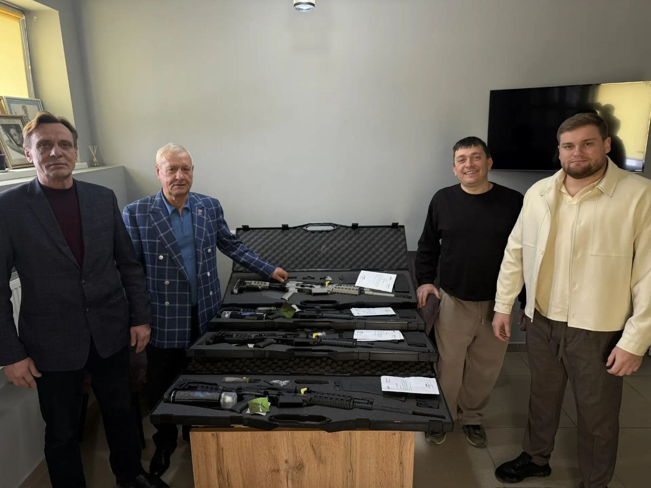 Сегодня передали Мясникову Александру оружие, приобретённое нами для защиты личного состава развед взвода от вражеских дронов.