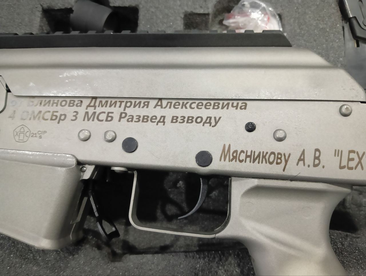 Решили, что будет правильно оружие сделать именным. Оружие названо в честь Советского района города Челябинска и других населённых пунктов, в которых простые граждане куют нашу общую победу!